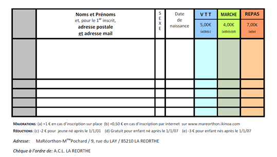 acceptons toute inscription par courrier postal parvenue au plus tard
